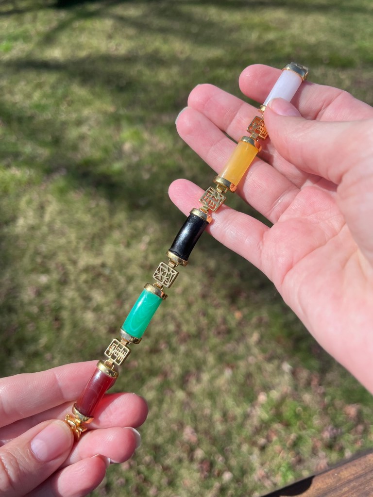 It became extremely popular in jewelry during the 1940s-1960s for its light weight, durability, and shatter-resistance.