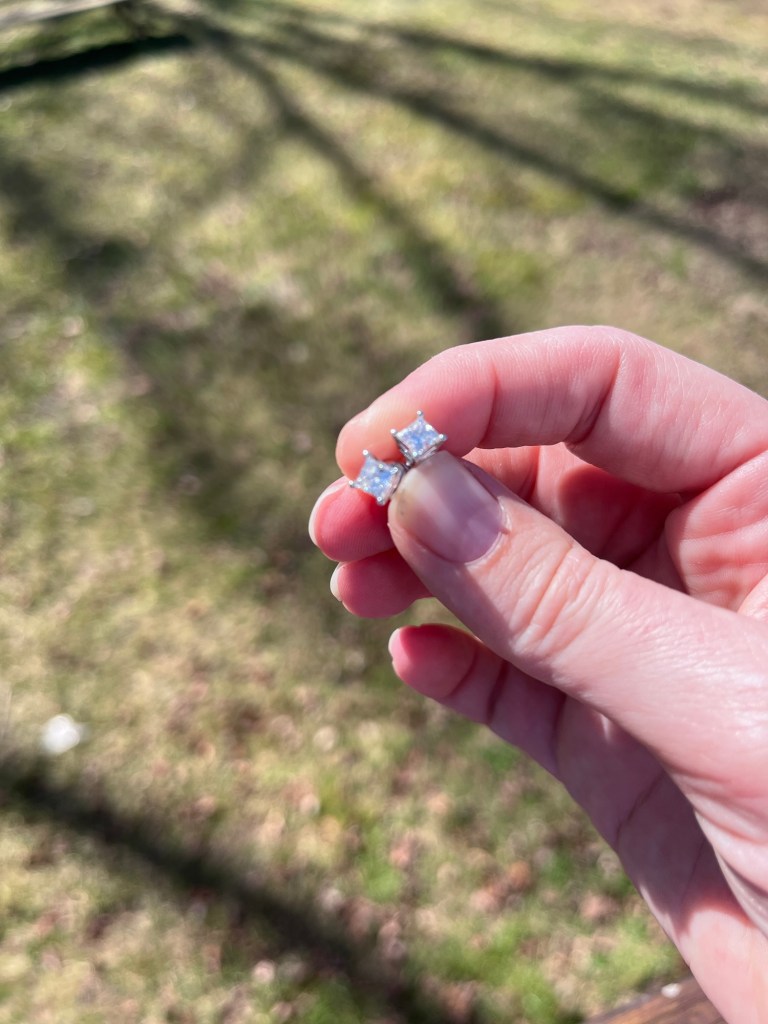 Natural colorless princess-cut diamond stud earrings